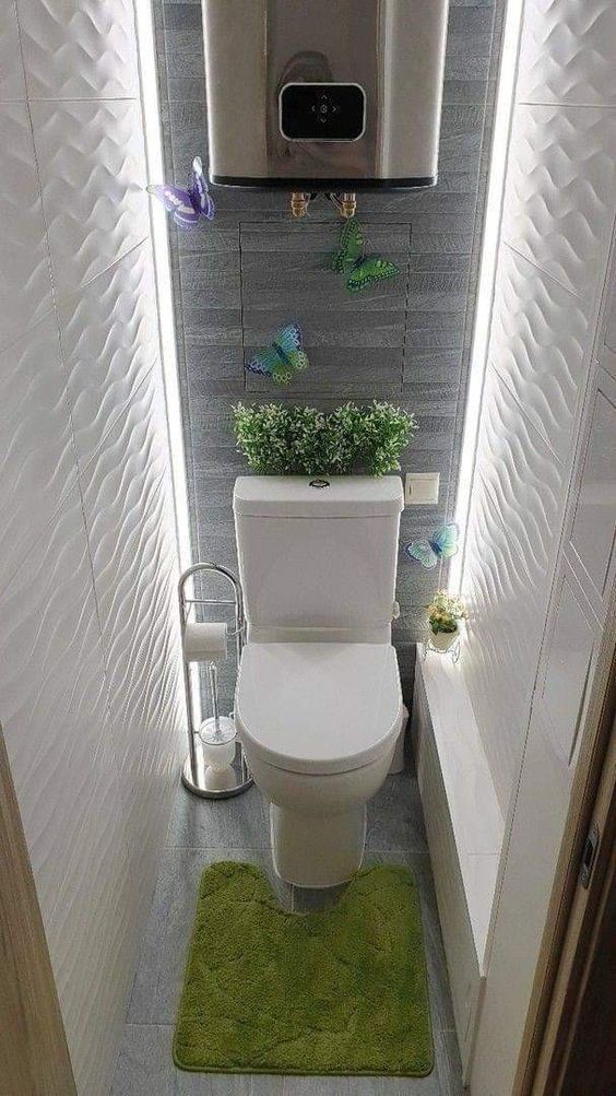 Een minimalistische en moderne stijl is een populaire keuze voor veel mensen. Dit kan worden bereikt door het gebruik van strakke lijnen, neutrale kleuren en weinig decoratie. Een witte wastafel, een strakke spiegel en een eenvoudige toiletpot kunnen al een groot verschil maken. Voeg wat groen toe voor een frisse touch, zoals een klein boompje of enkele groene planten in een mooie pot.